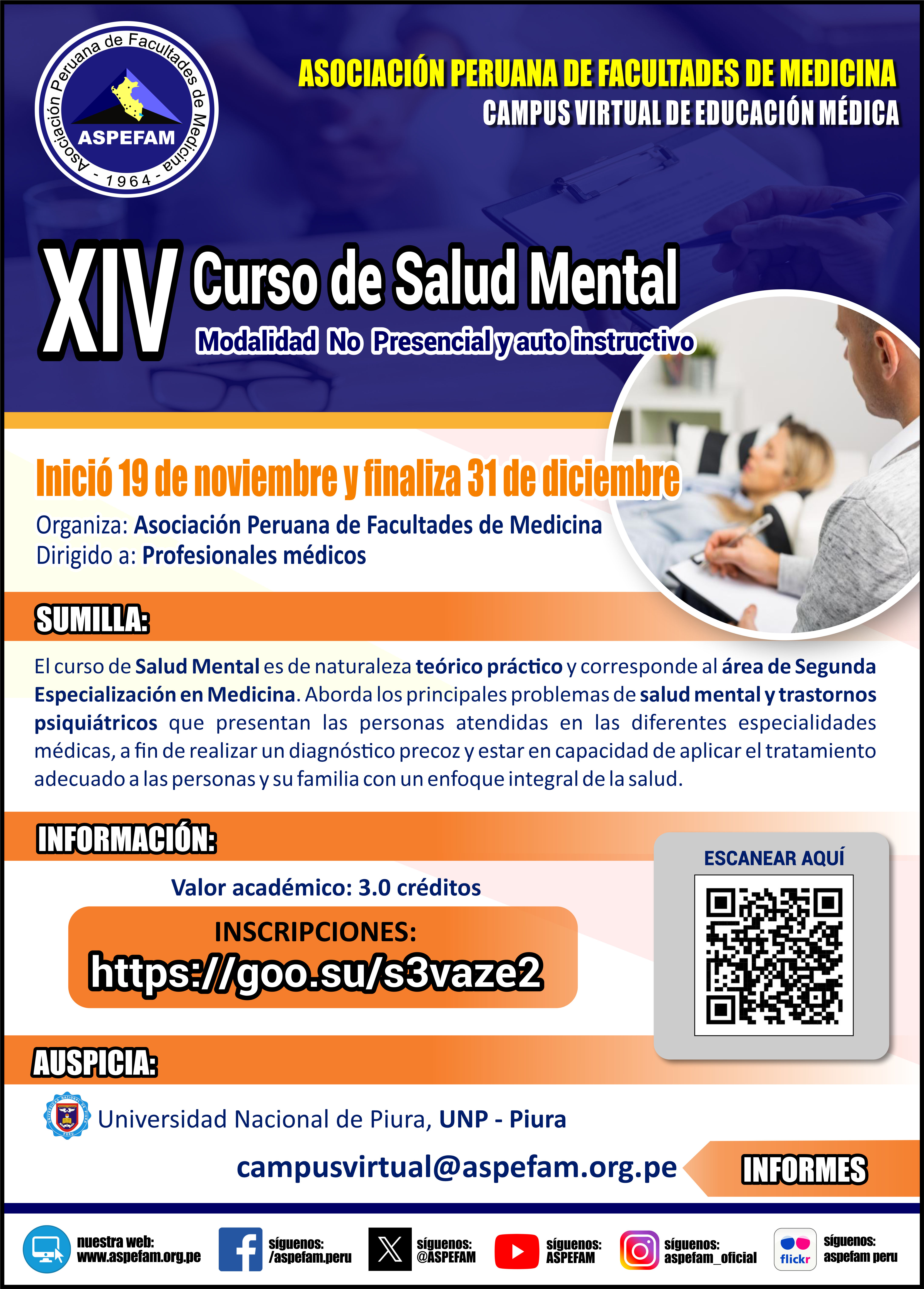 Aquí podra realizar el registro de su solicitud para constancia ENAM, carné ASPEFAM, descarga de certificados videoconferencias, documentos institucionales, otras solicitudes.