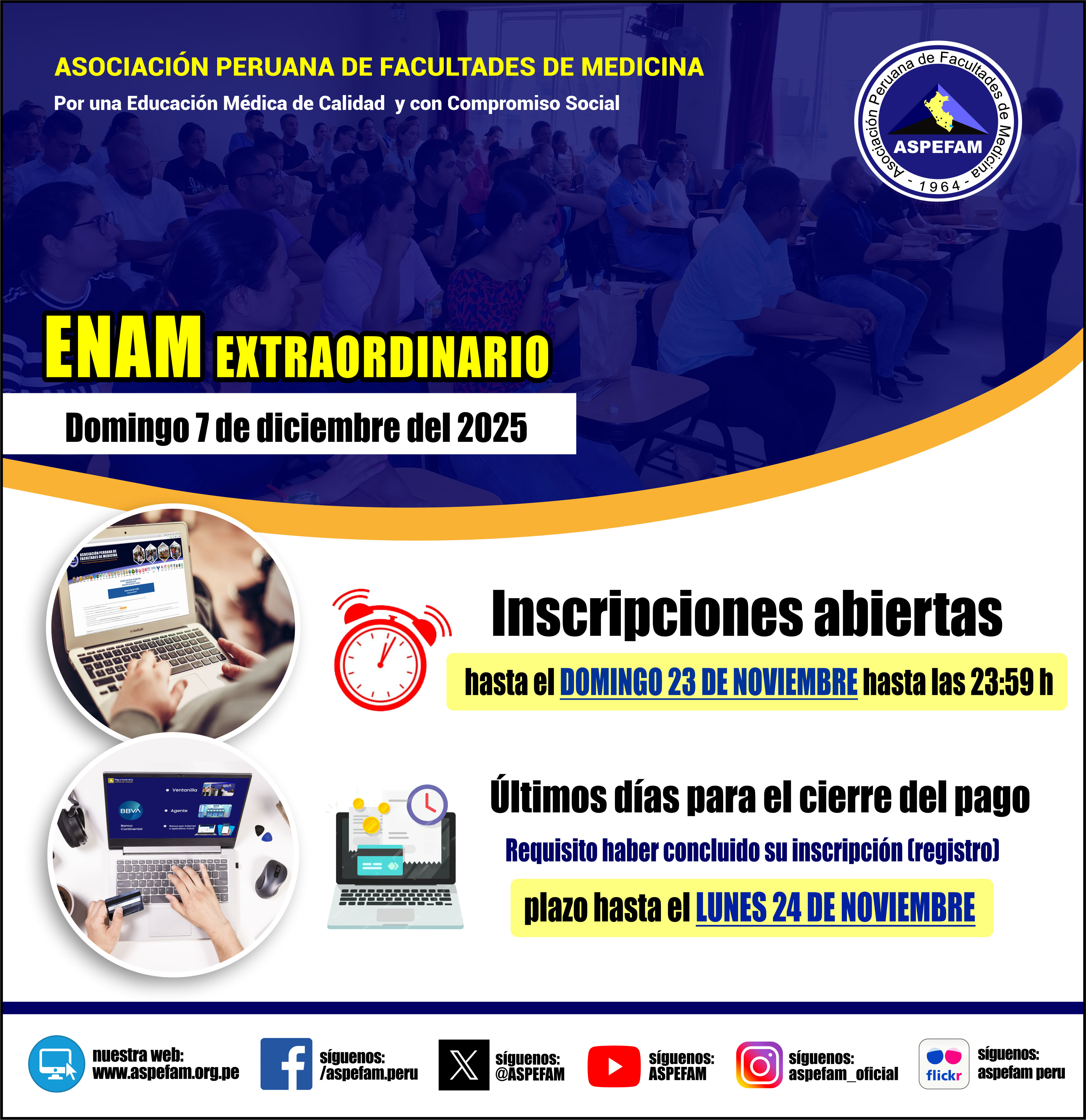 Se celebran 56 años de ASPEFAM, una historia al servicio de la educación médica en el país con numerosos aportes como sus congresos, seminarios de reforma curricular, el ENAM como indicador de calidad educativa, la mejora del internado, la educación médica continua y la acreditación. Felicitaciones.