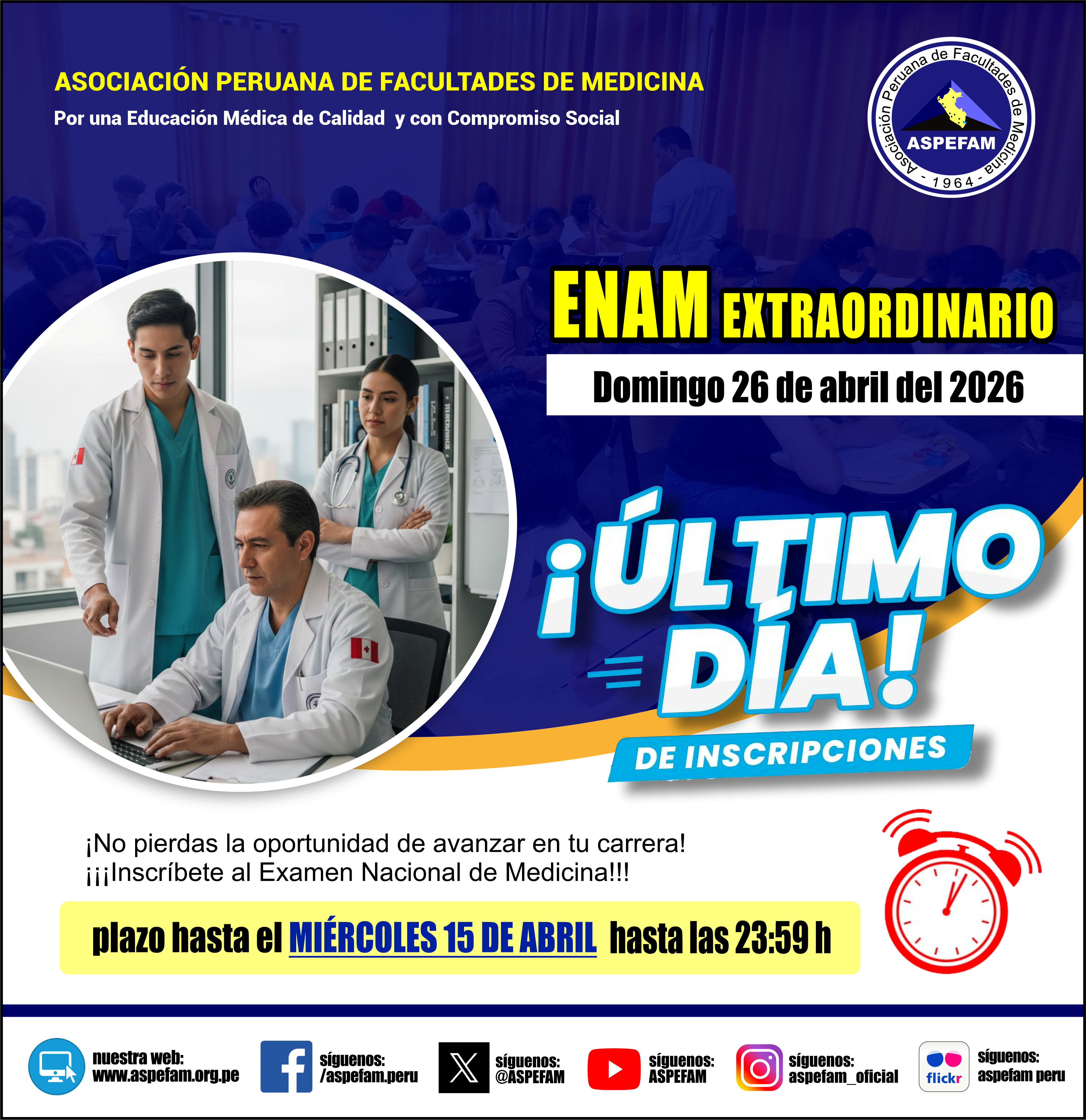 Aquí encontrará información referente al proceso extraordinario del Examen Nacional de Medicina a realizarse el domingo 26 de abril del 2026.