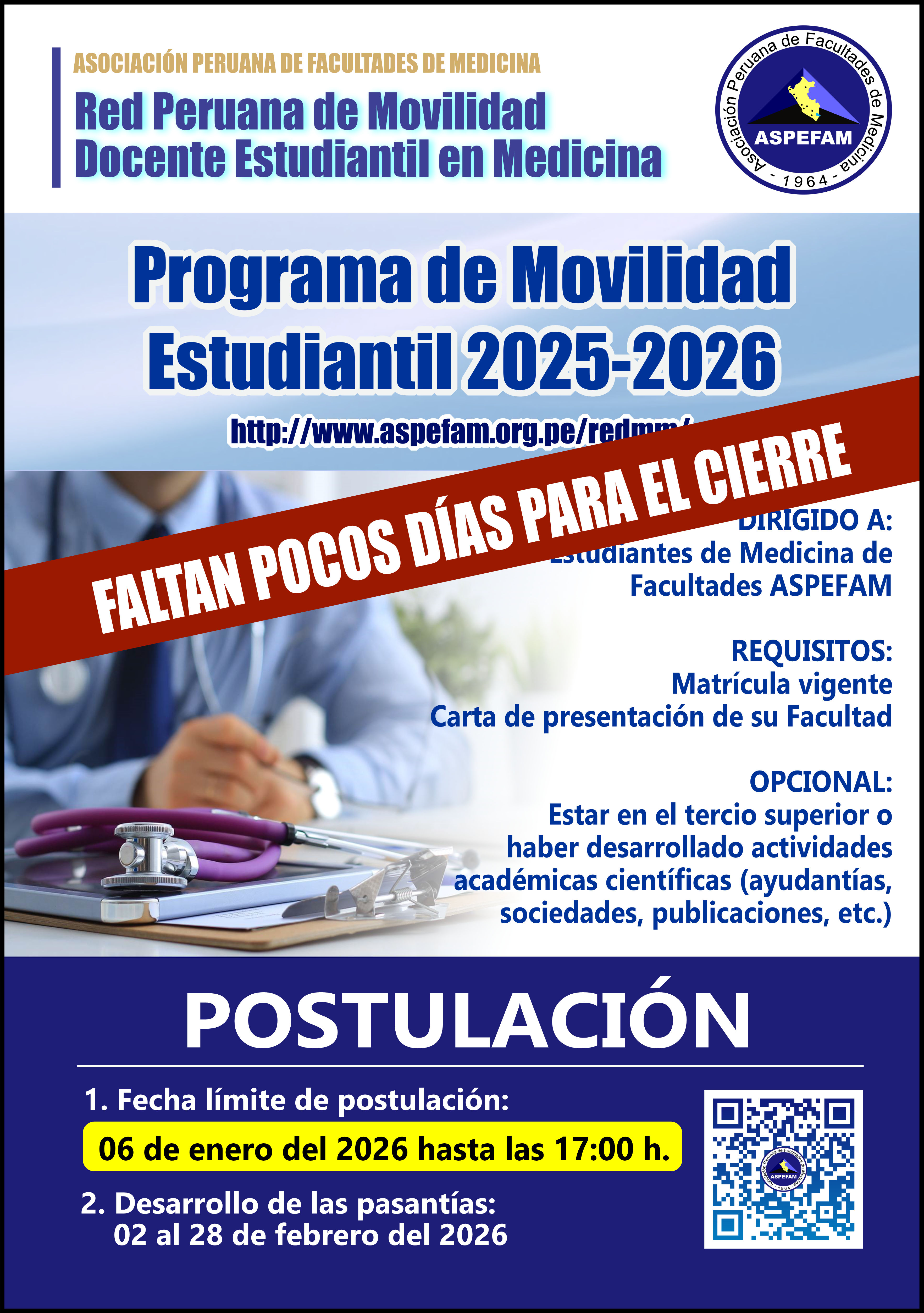 La Asociación Peruana de Facultades de Medicina (ASPEFAM), fundada el 11 de Enero de 1964, es la institución representativa de las facultades médicas del Perú. En la actualidad está integrada por 39 facultades. ASPEFAM es reconocida por el Estado Peruano como institución asesora del Sector Salud en los temas de educación médica. Es miembro del Consejo Nacional de Residentado Médico - CONAREME, el Comité Nacional de Pregrado de Salud, e integra diversas instancias en el Colegio Médico del Perú y Comisiones de Alto Nivel de carácter nacional.