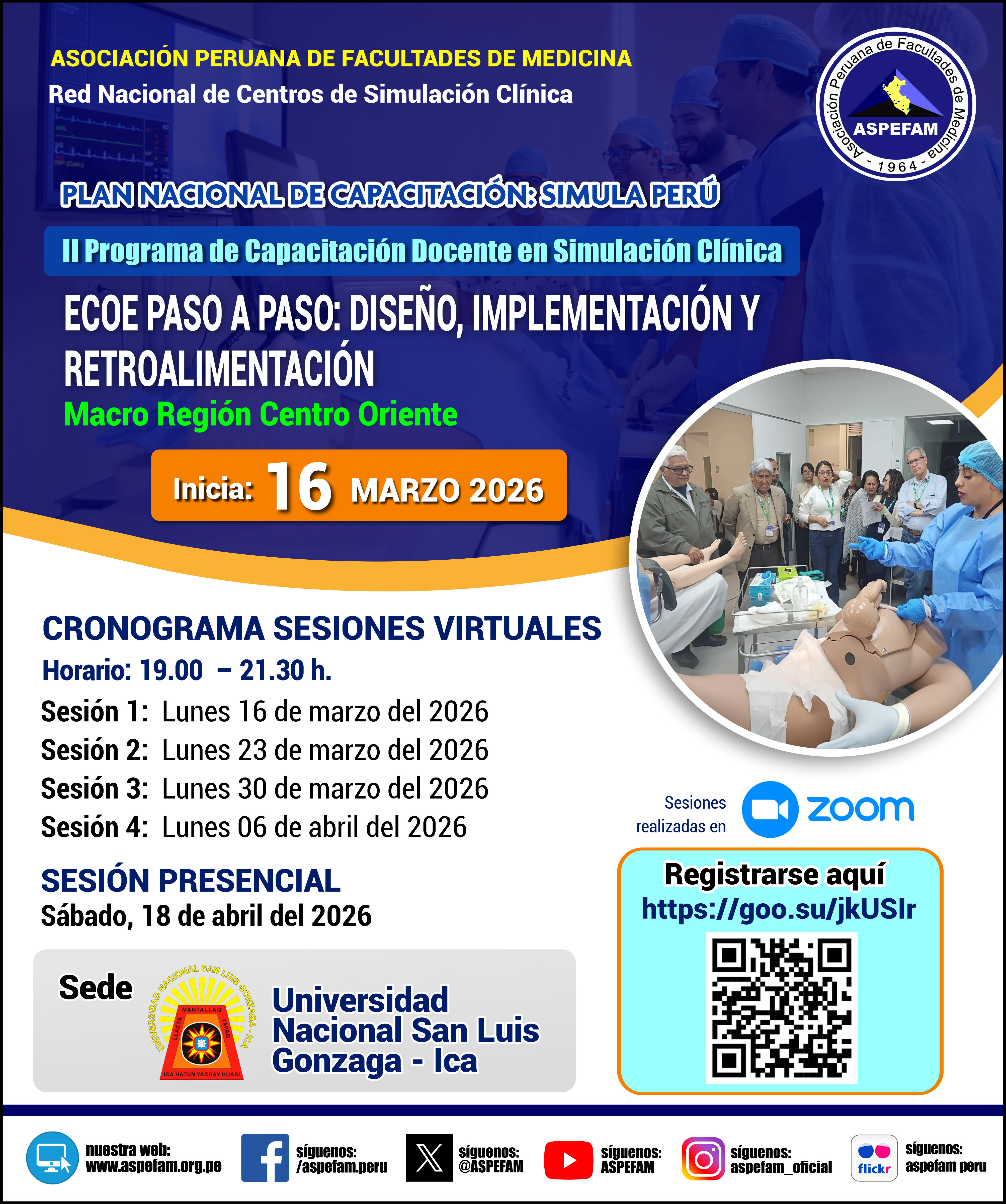 Aquí encontrará información referente a la “Serie de Sesiones Académicas en Simulación Clínica 2026”, registrarse para participar de los Webinars.