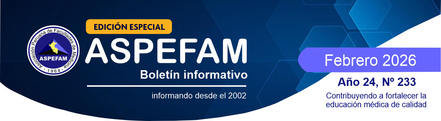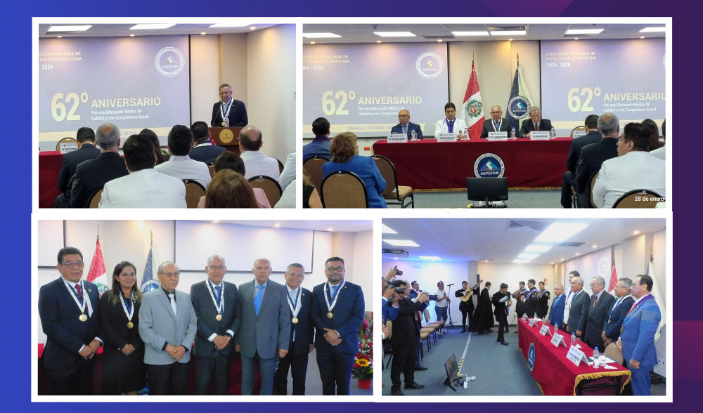La Asociación Peruana de Facultades de Medicina (ASPEFAM) conmemoró el 11 de enero de 2026, con profundo orgullo y compromiso, su 62° aniversario de fundación institucional, reafirmando su rol como la principal institución representativa de las facultades médicas del país y como un actor clave en la mejora continua de la educación médica peruana desde 1964 hasta la actualidad. Desde su creación el 11 de enero de 1964, ASPEFAM ha trabajado de manera ininterrumpida para promover la calidad académica y científica en la formación de médicos, alineándose con las necesidades de salud de la sociedad peruana y los avances internacionales en educación médica. |