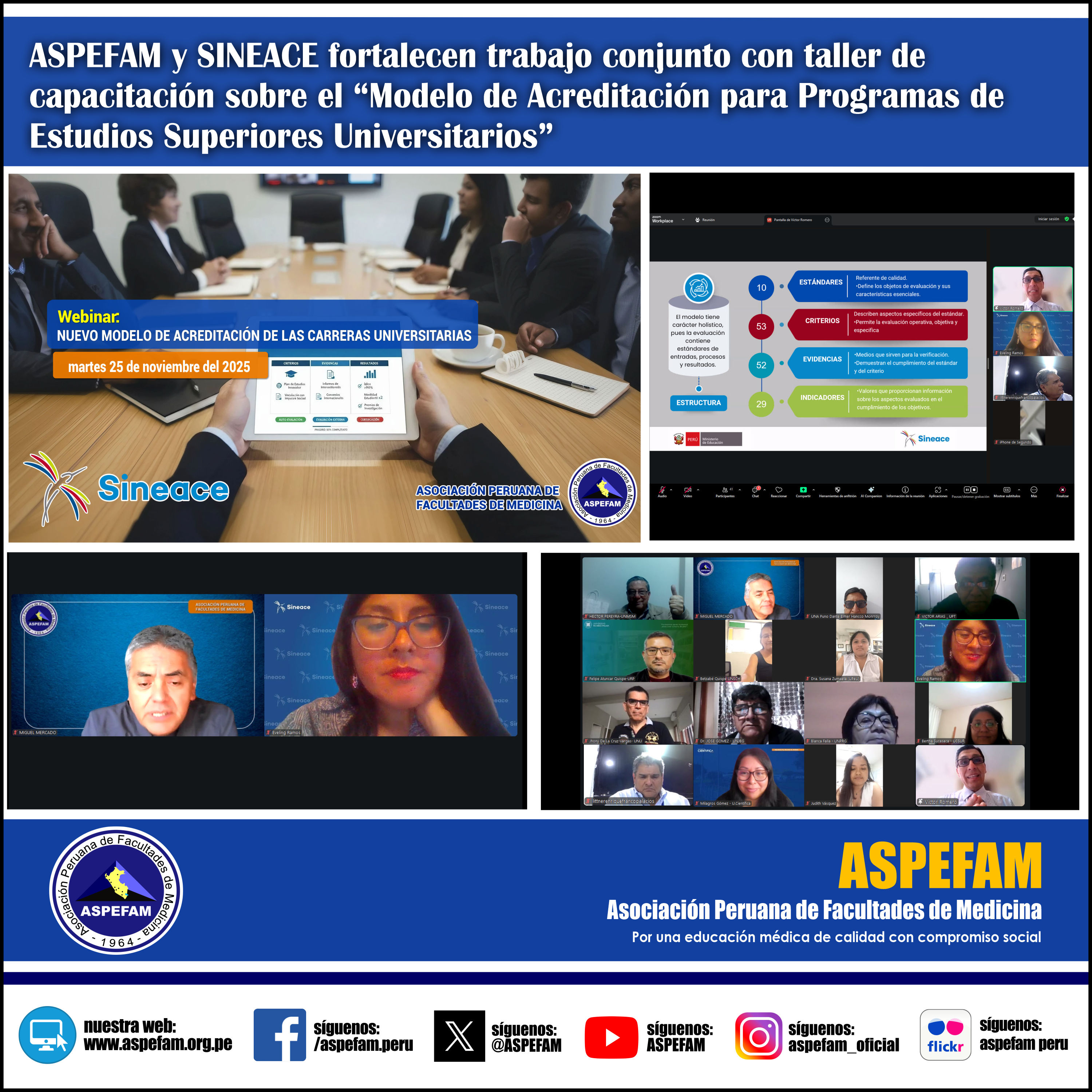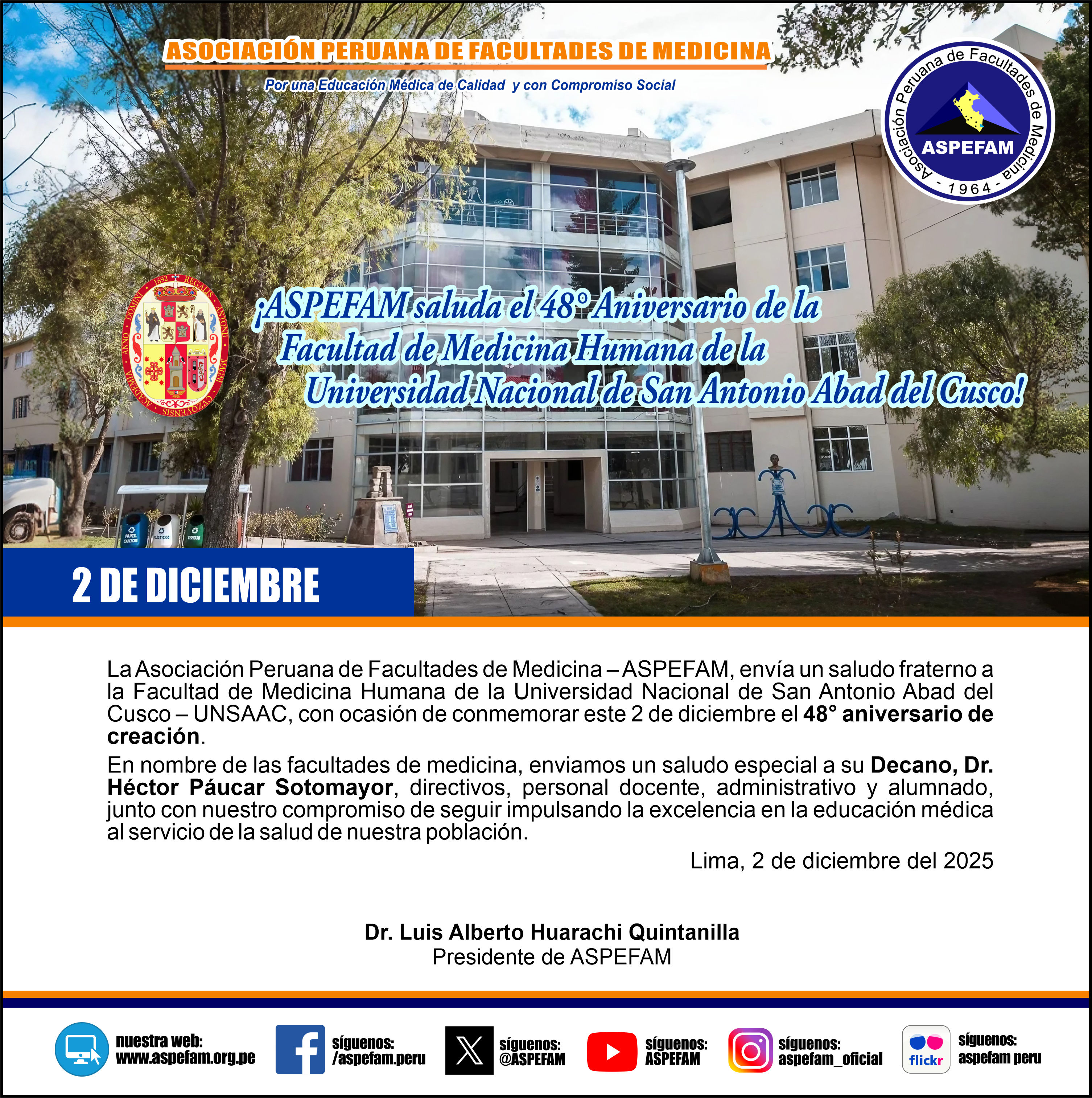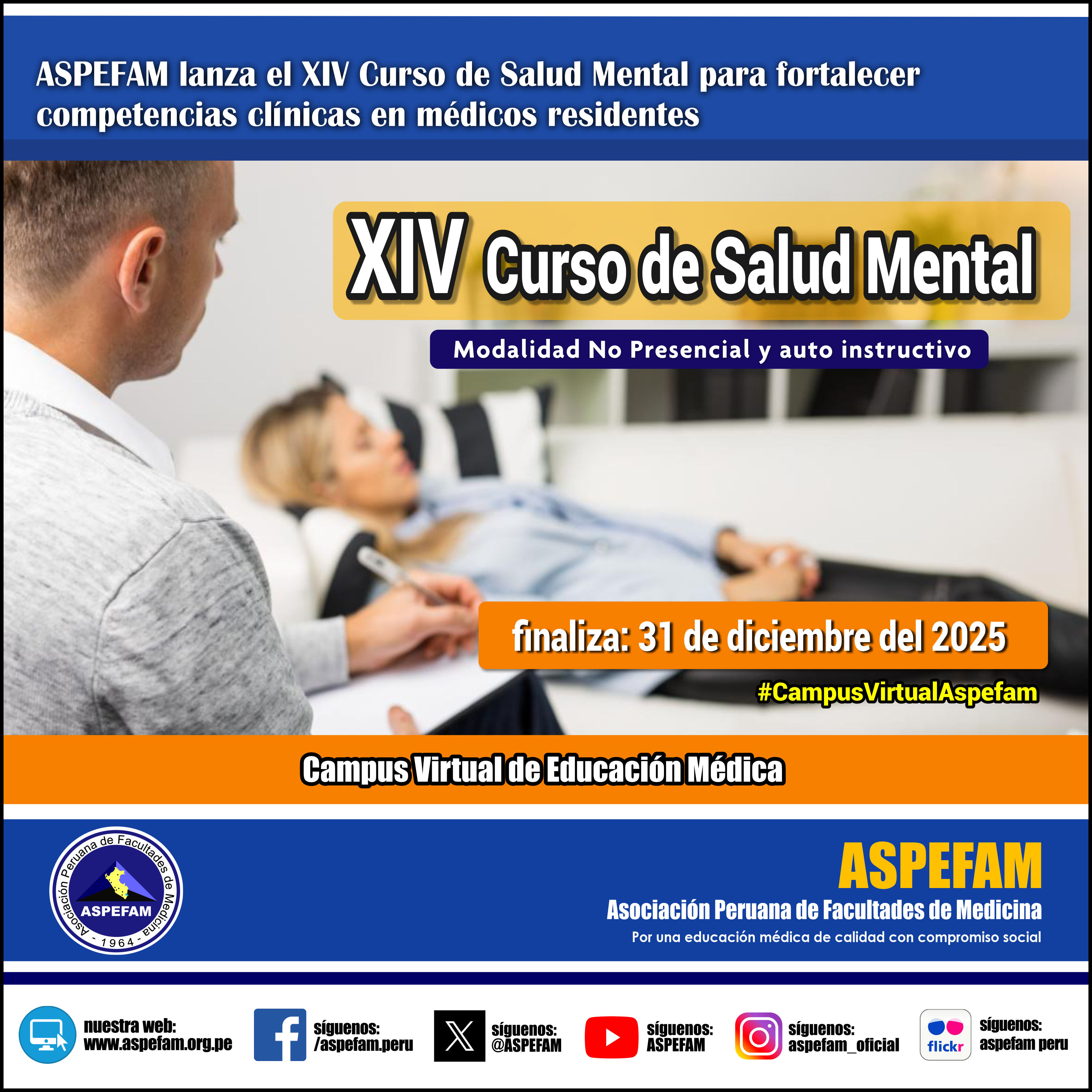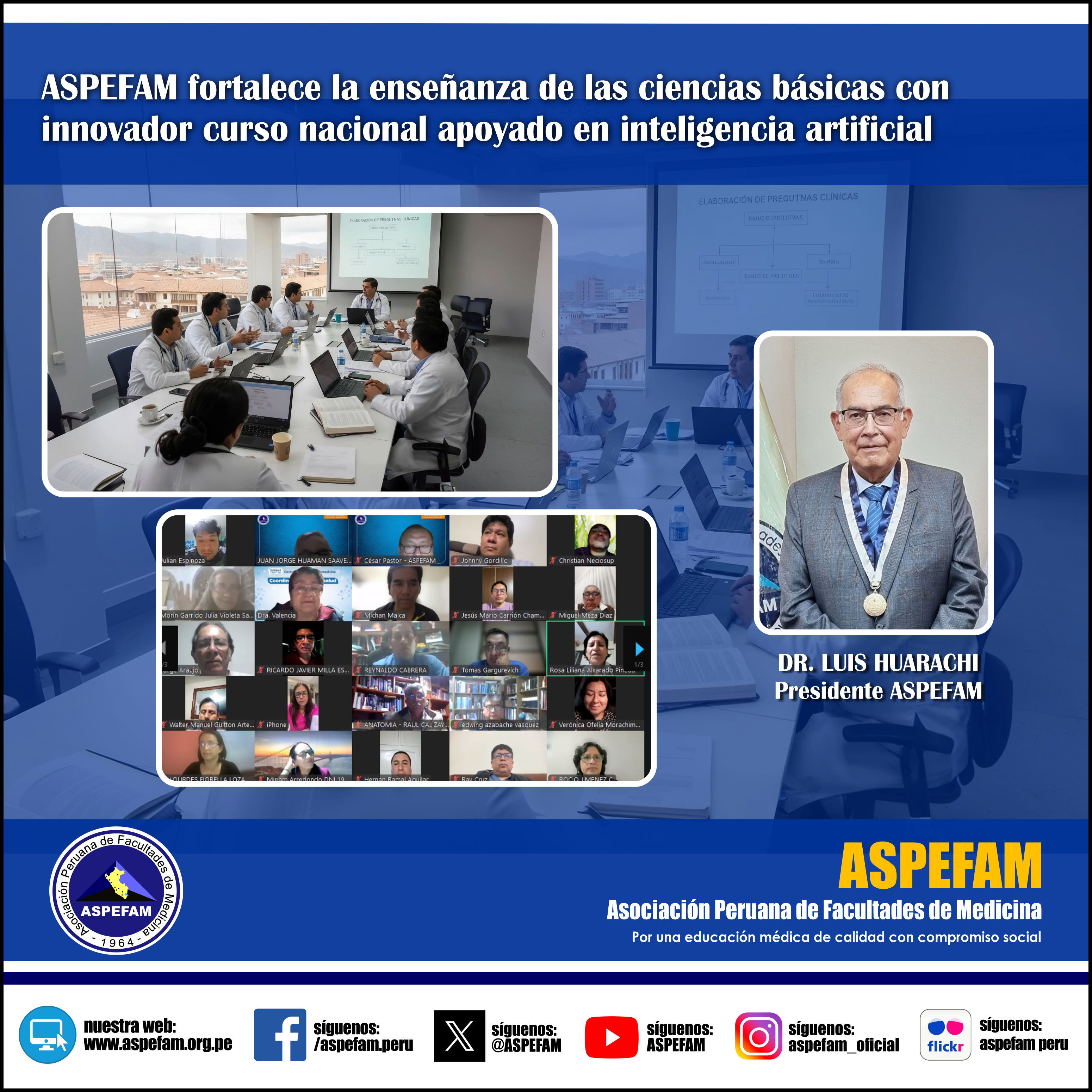 Resumen: Desde el 3 al 14 de noviembre del presente año, la Asociación Peruana de Facultades de Medicina -ASPEFAM, estará organizando el curso virtual “Evaluación de Conocimientos de Ciencias Básicas por Pruebas Objetivas” en las áreas de anatomía, bioquímica, fisiología, farmacología, histología, embriología, patología y microbiología-parasitología...
