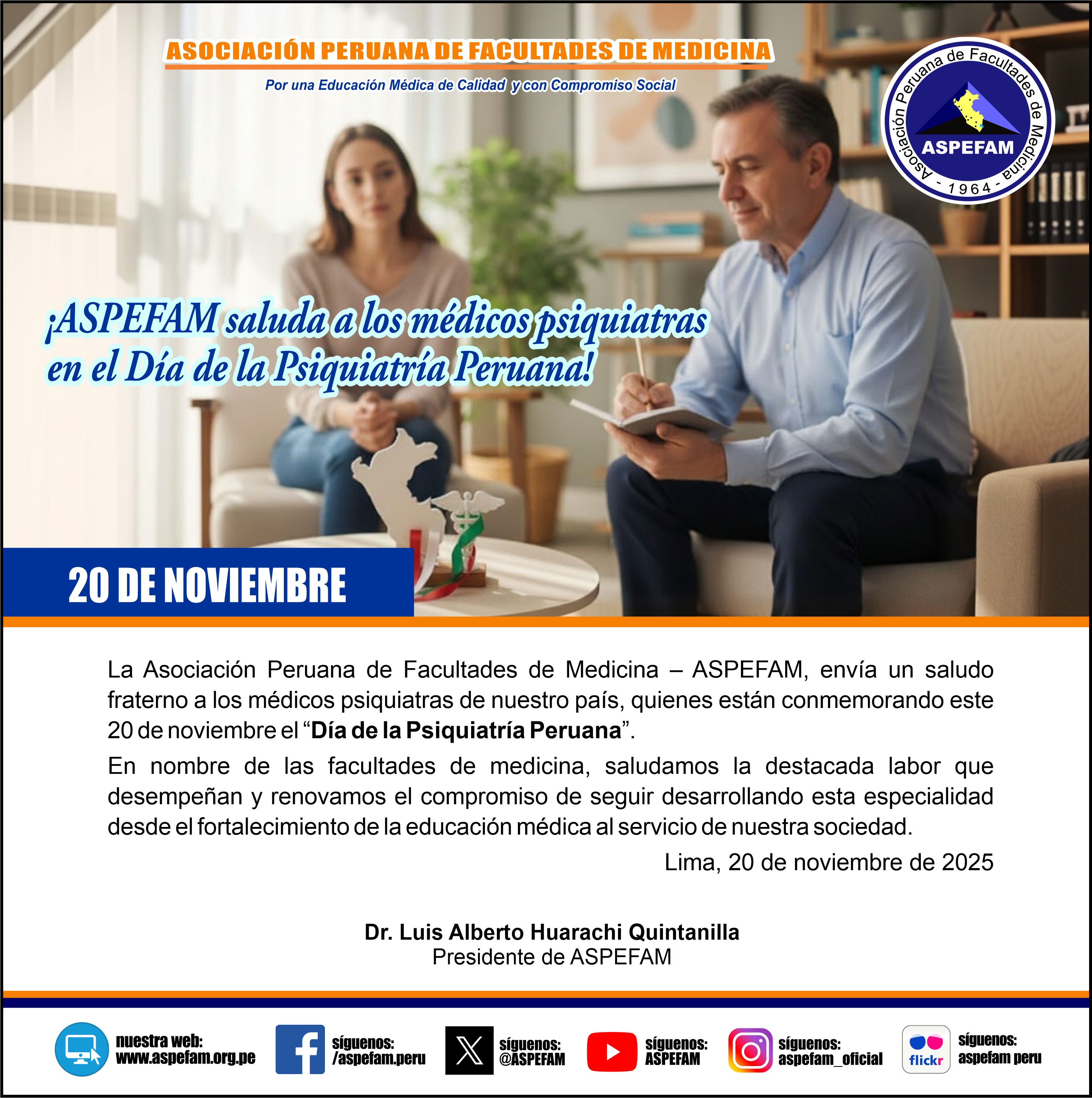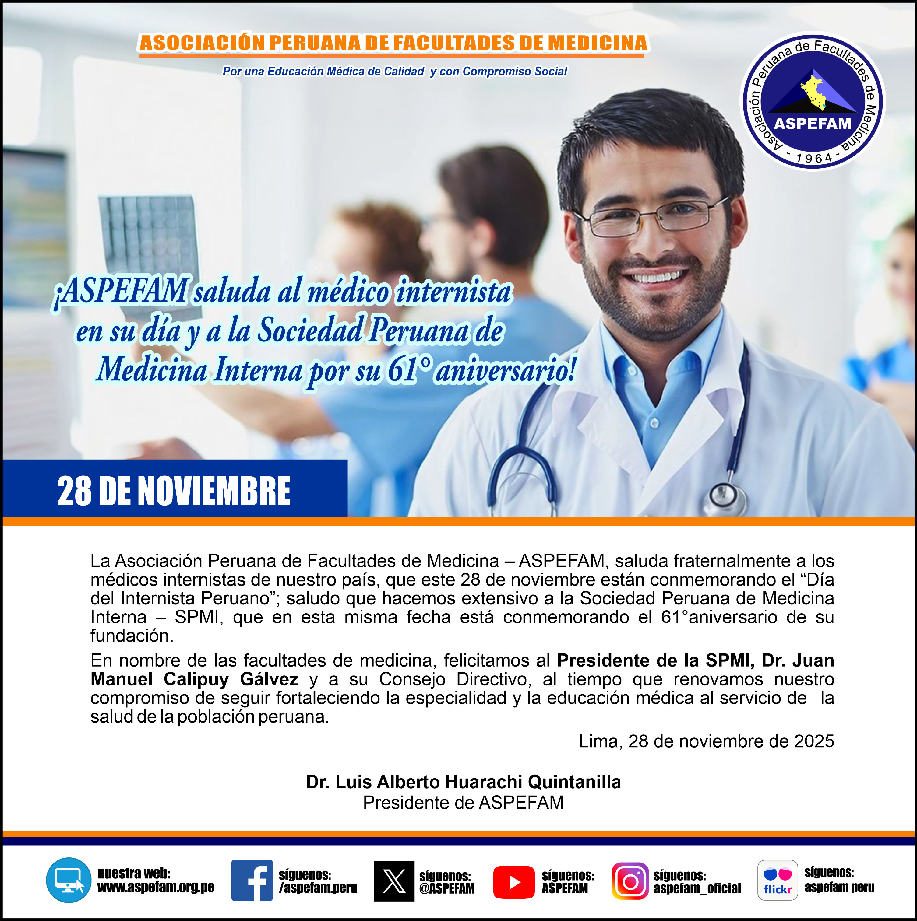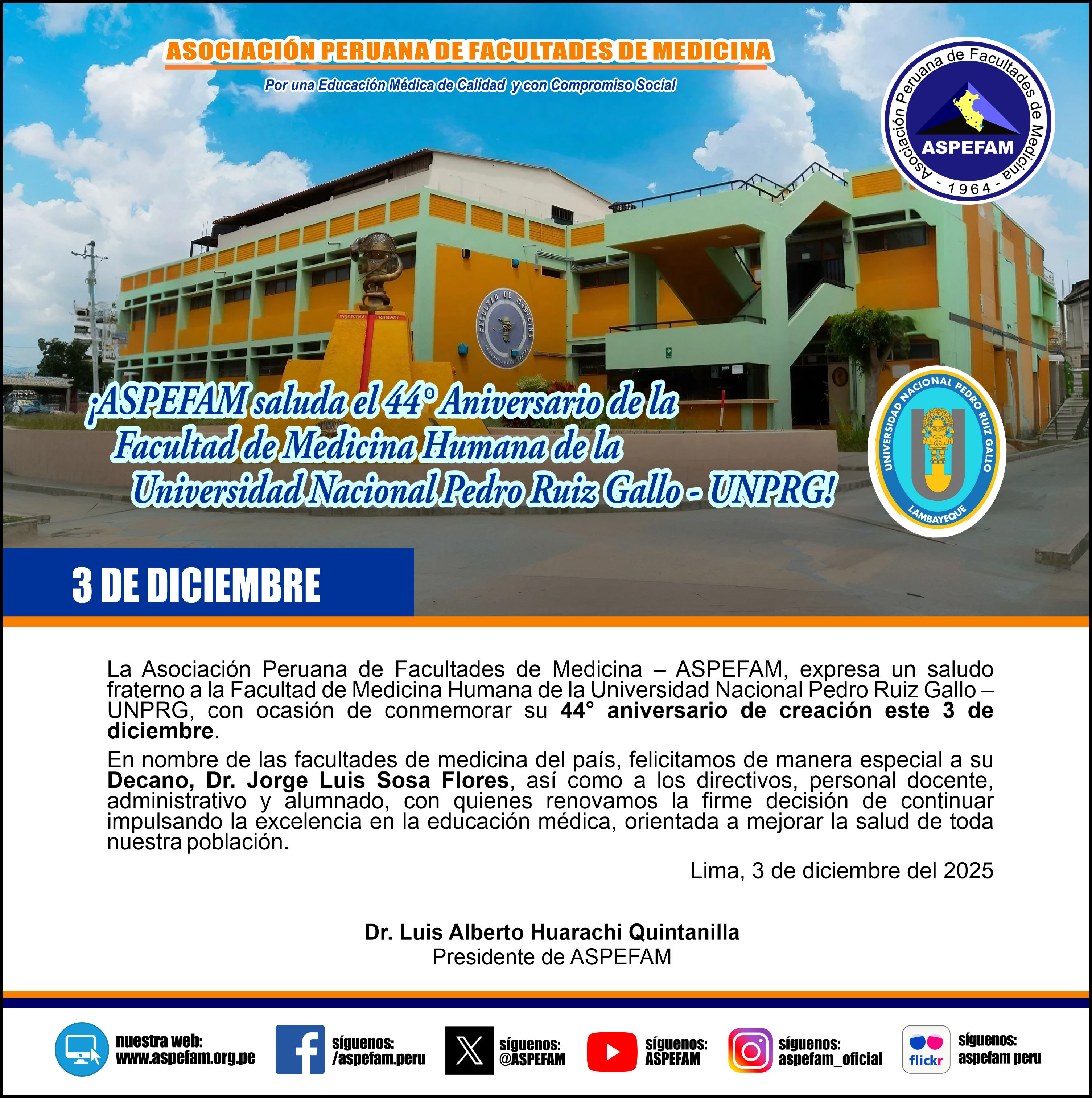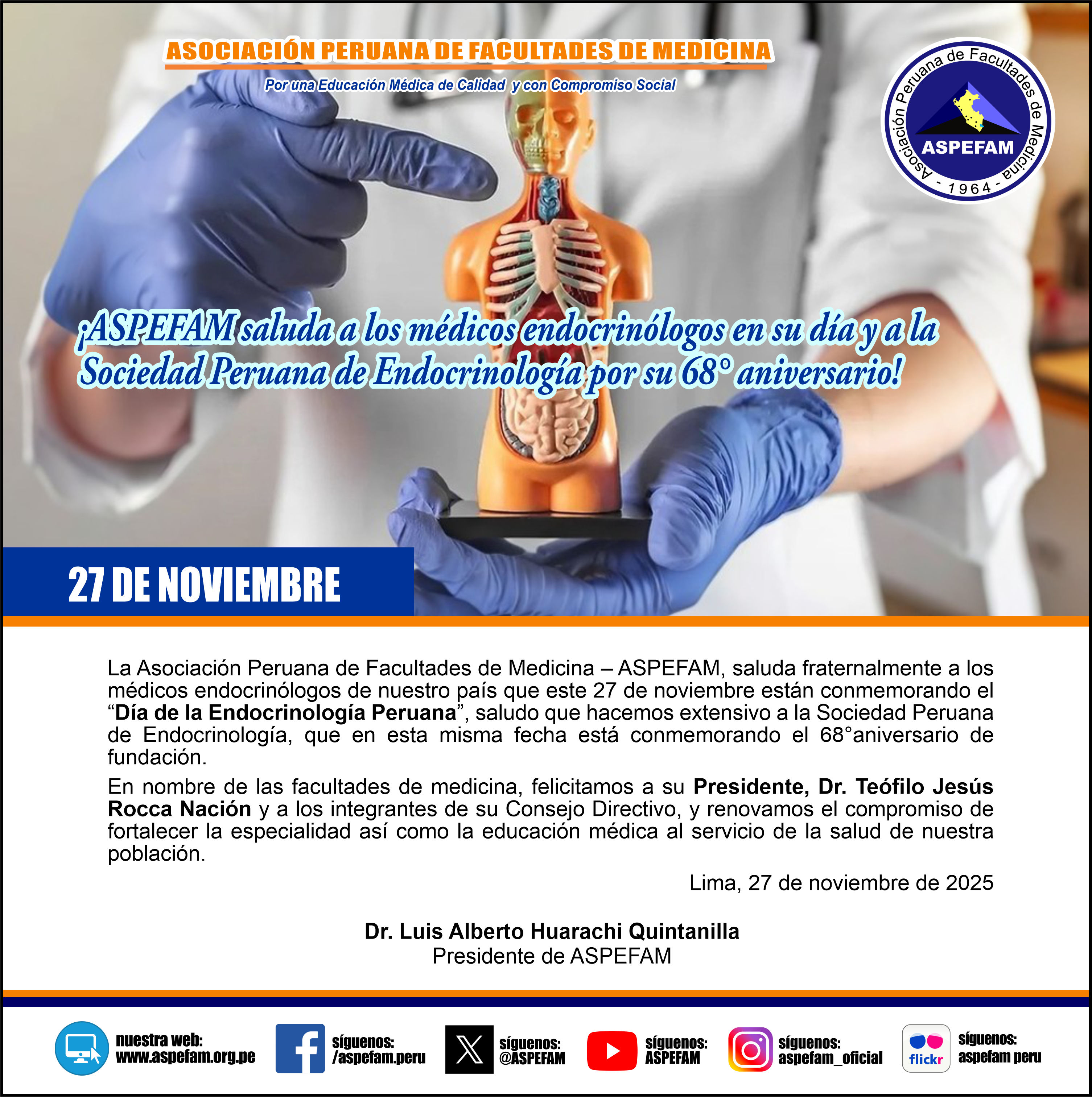 Resumen: Desde el 3 al 14 de noviembre del presente año, la Asociación Peruana de Facultades de Medicina -ASPEFAM, estará organizando el curso virtual “Evaluación de Conocimientos de Ciencias Básicas por Pruebas Objetivas” en las áreas de anatomía, bioquímica, fisiología, farmacología, histología, embriología, patología y microbiología-parasitología...