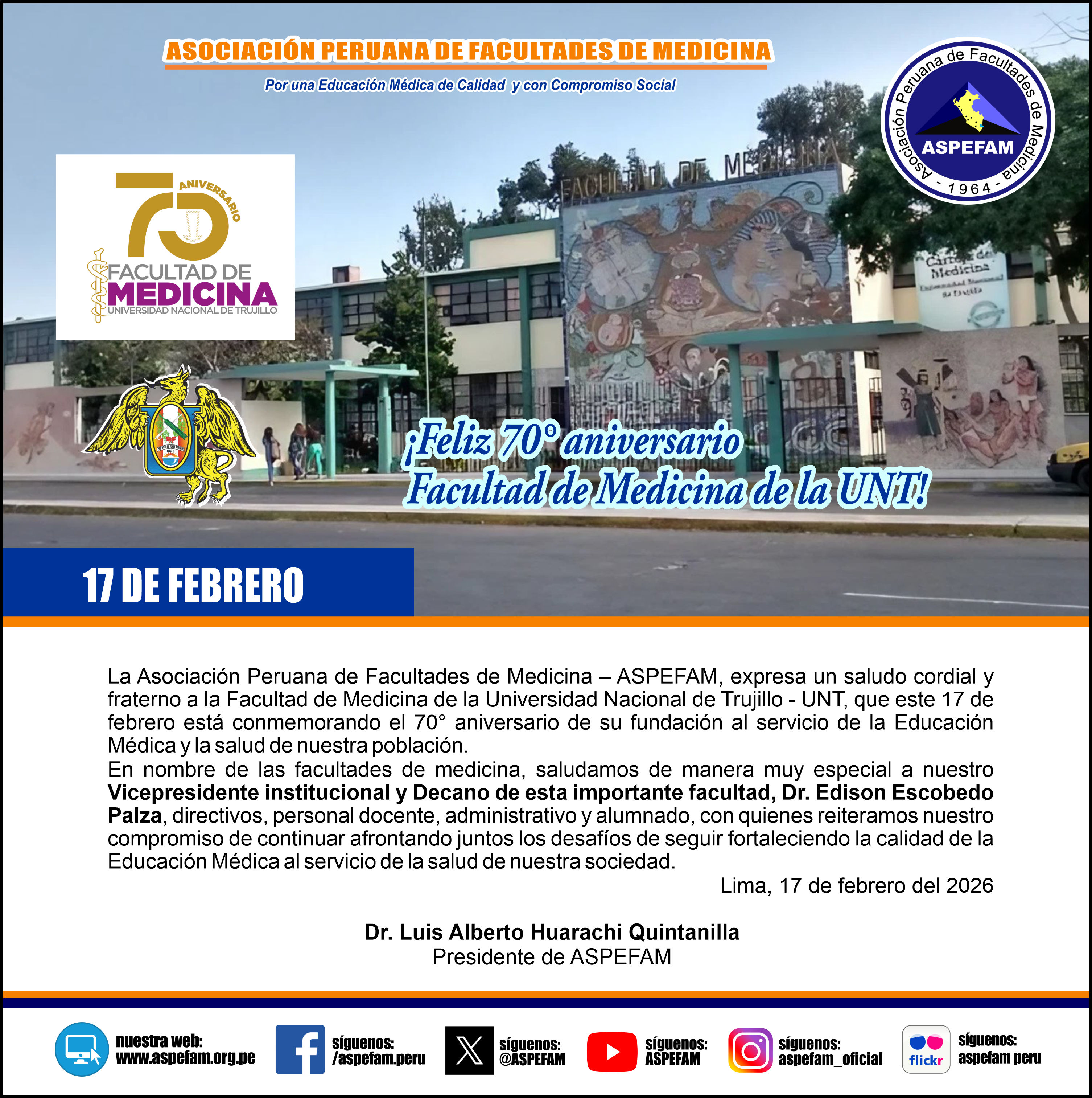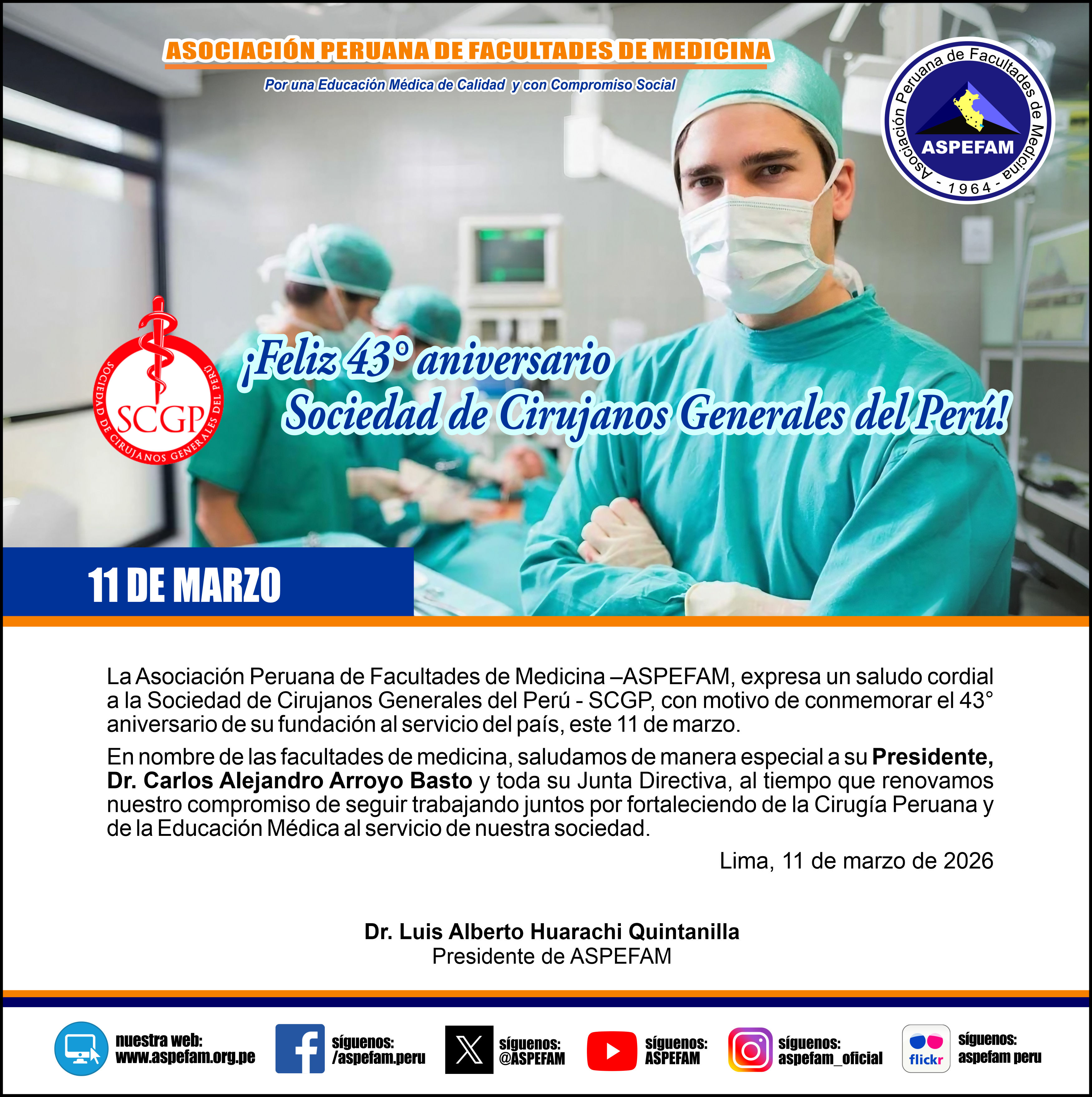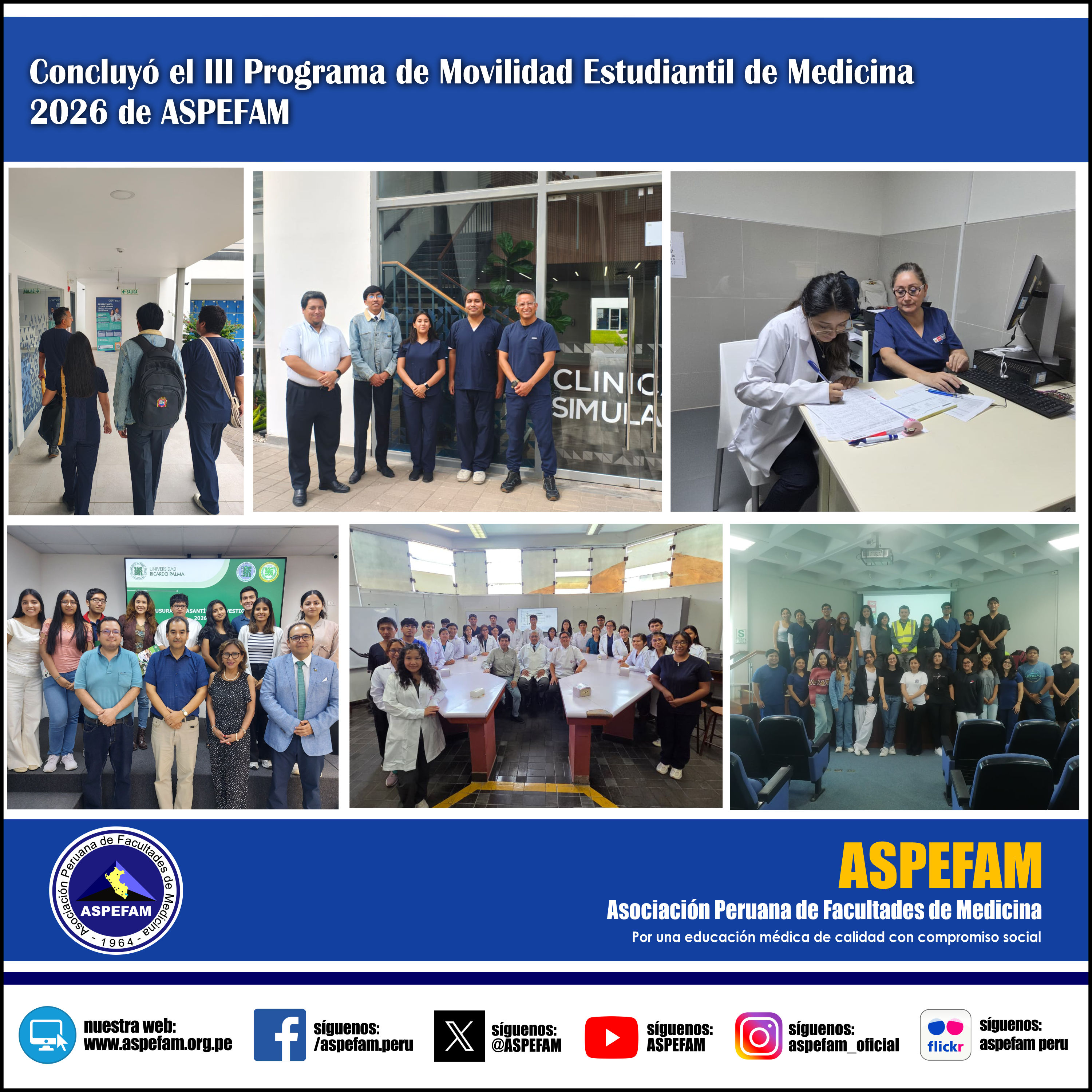 Resumen: El VIII Programa de Alta Gerencia en Educación Médica (PAGEM 2025), organizado por la Asociación Peruana de Facultades de Medicina (ASPEFAM), ha permitido fortalecer de manera estratégica las capacidades de gestión académica, administrativa y gerencial de los decanos, directivos en funciones y docentes llamados a asumir cargos directivos en las facultades de medicina del país, en un contexto marcado por crecientes exigencias de calidad, acreditación y sostenibilidad institucional...
