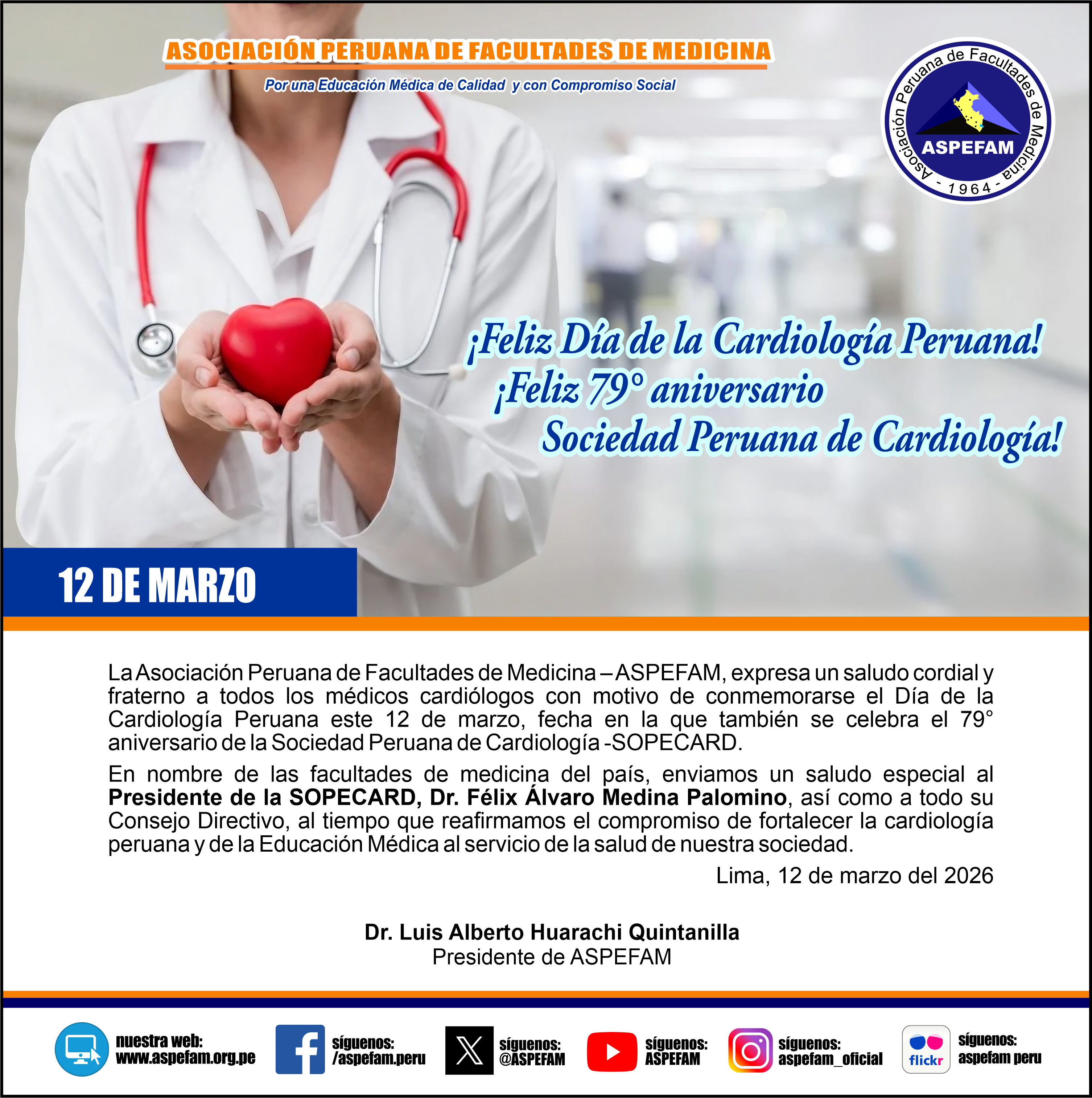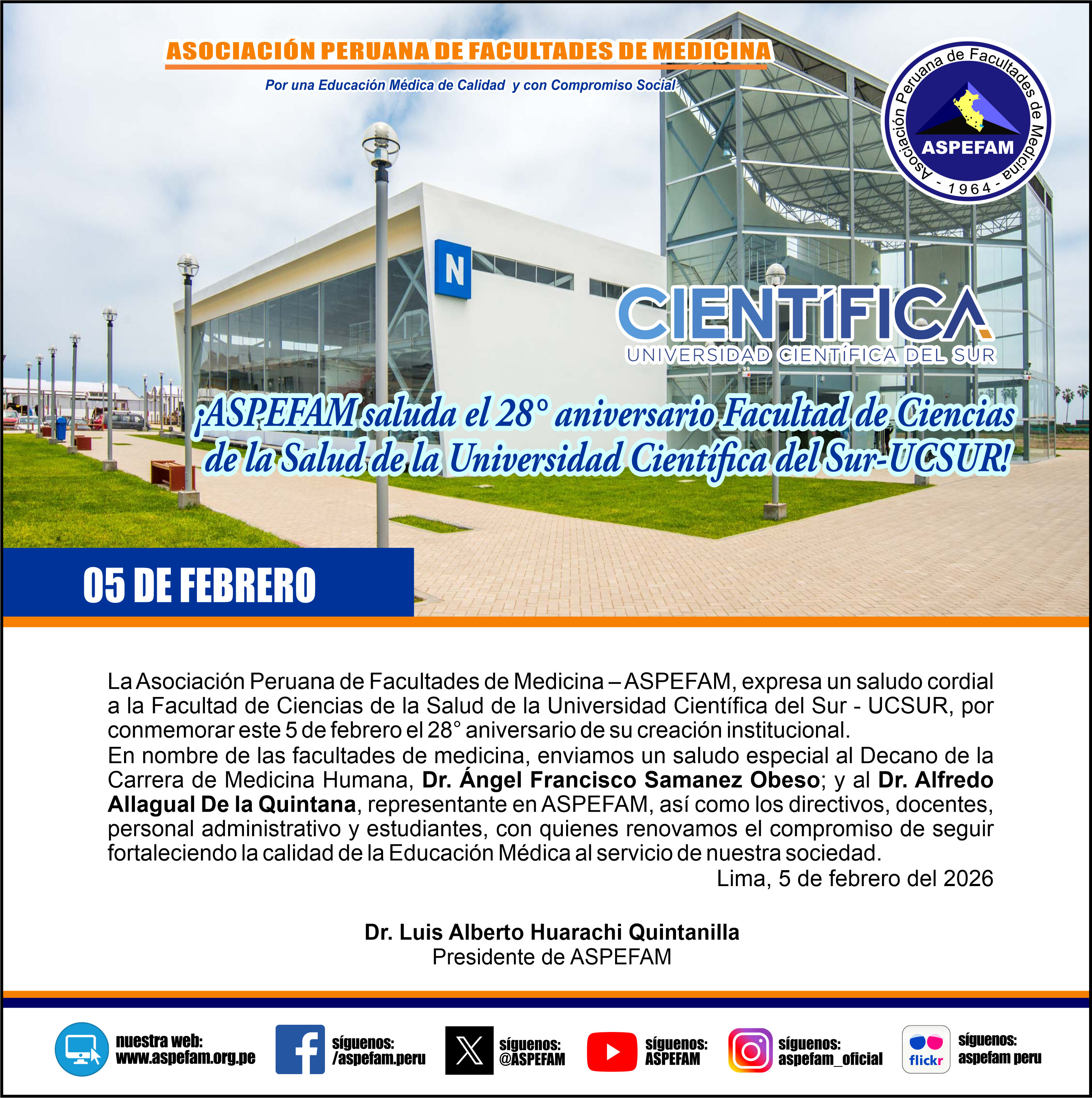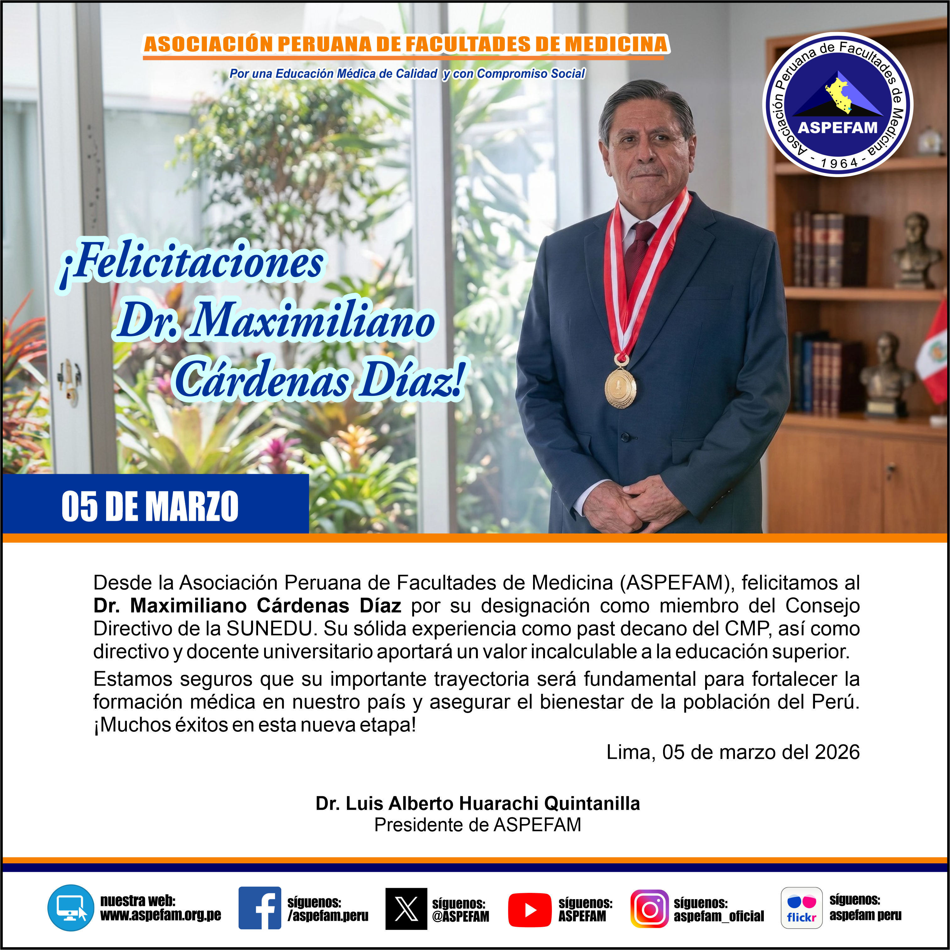 Resumen: El VIII Programa de Alta Gerencia en Educación Médica (PAGEM 2025), organizado por la Asociación Peruana de Facultades de Medicina (ASPEFAM), ha permitido fortalecer de manera estratégica las capacidades de gestión académica, administrativa y gerencial de los decanos, directivos en funciones y docentes llamados a asumir cargos directivos en las facultades de medicina del país, en un contexto marcado por crecientes exigencias de calidad, acreditación y sostenibilidad institucional...