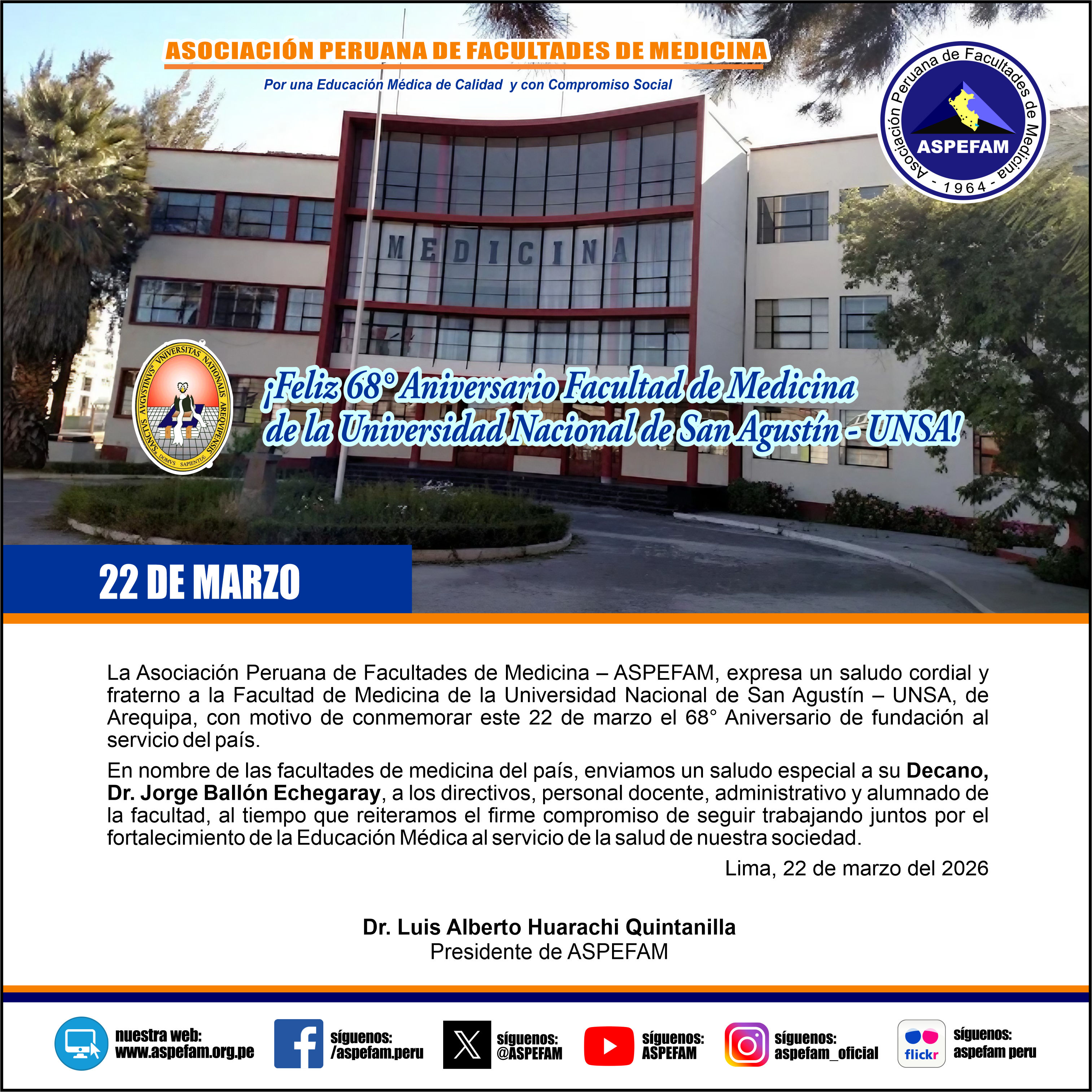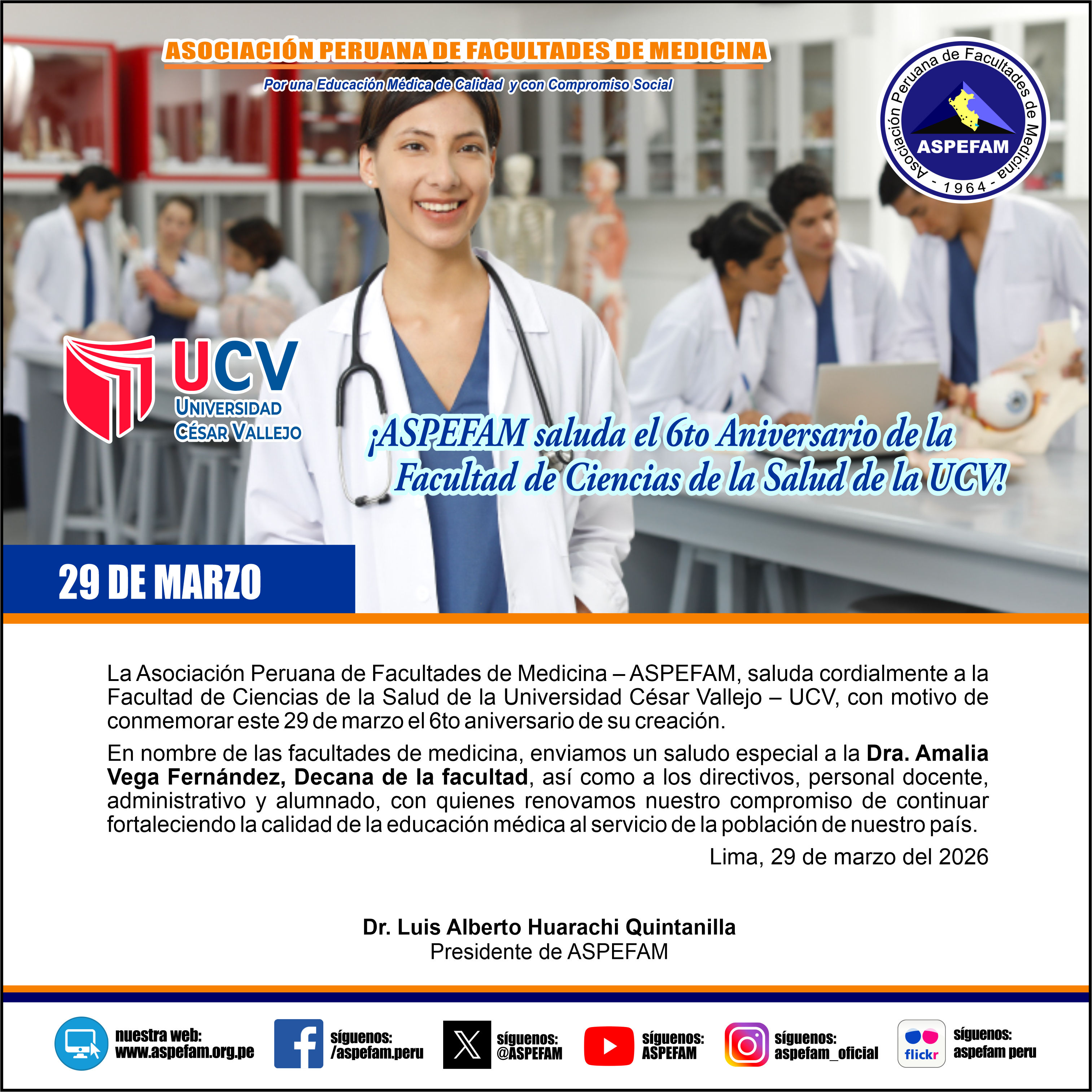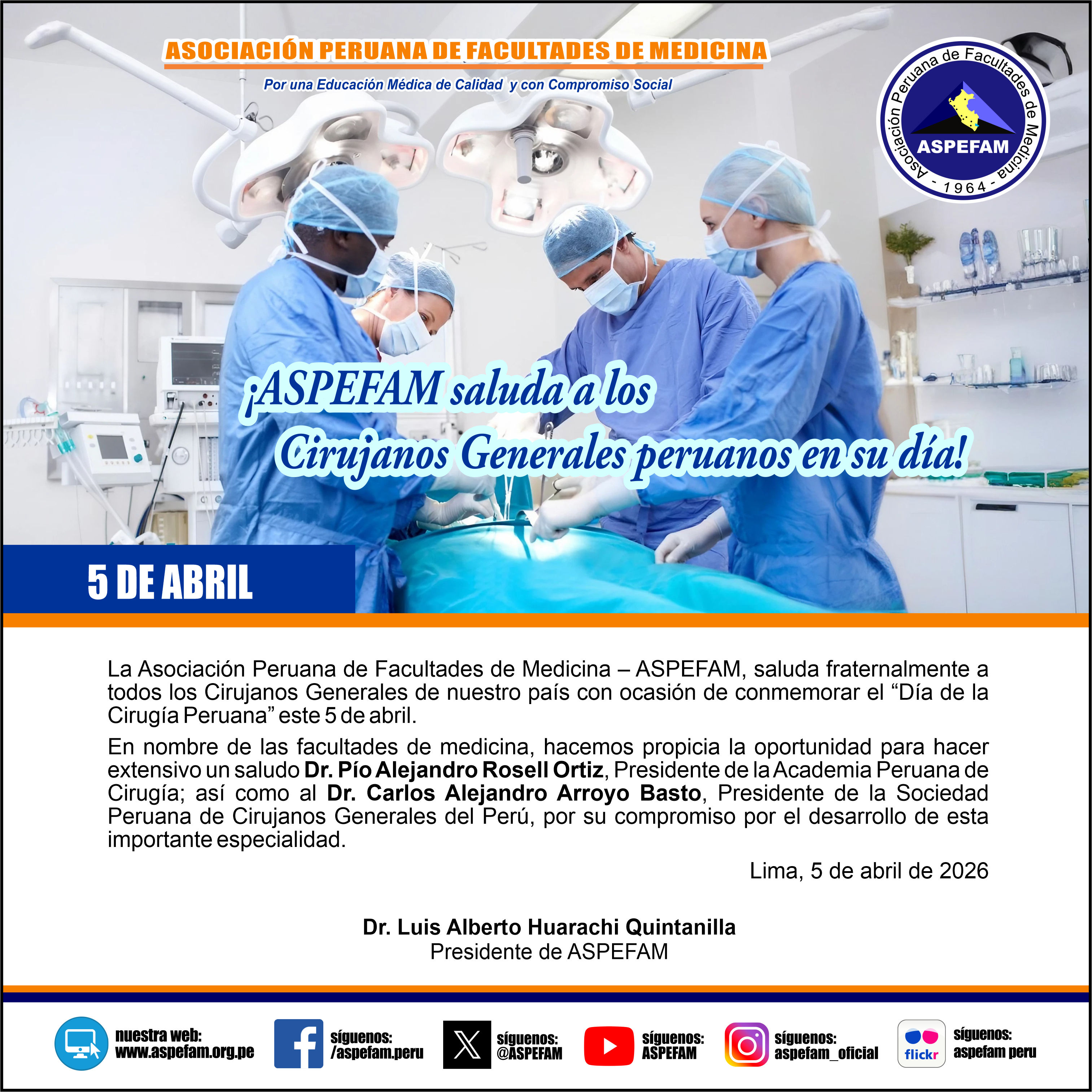 Resumen: El VIII Programa de Alta Gerencia en Educación Médica (PAGEM 2025), organizado por la Asociación Peruana de Facultades de Medicina (ASPEFAM), ha permitido fortalecer de manera estratégica las capacidades de gestión académica, administrativa y gerencial de los decanos, directivos en funciones y docentes llamados a asumir cargos directivos en las facultades de medicina del país, en un contexto marcado por crecientes exigencias de calidad, acreditación y sostenibilidad institucional...