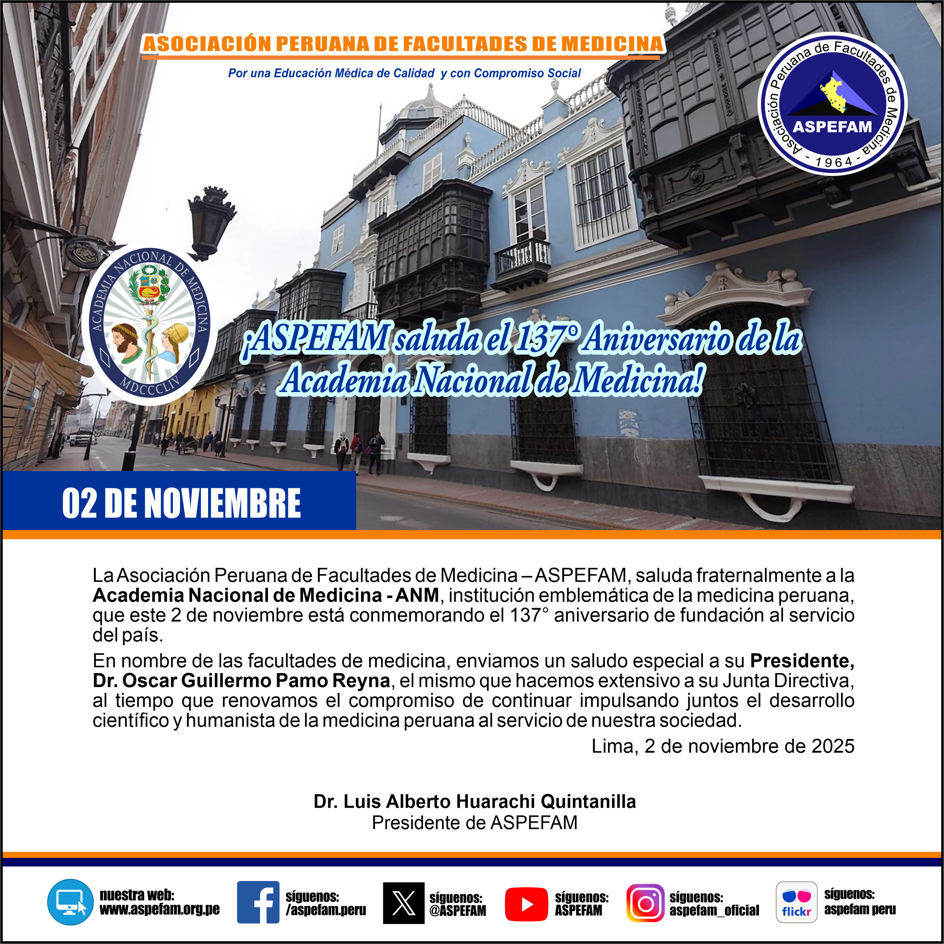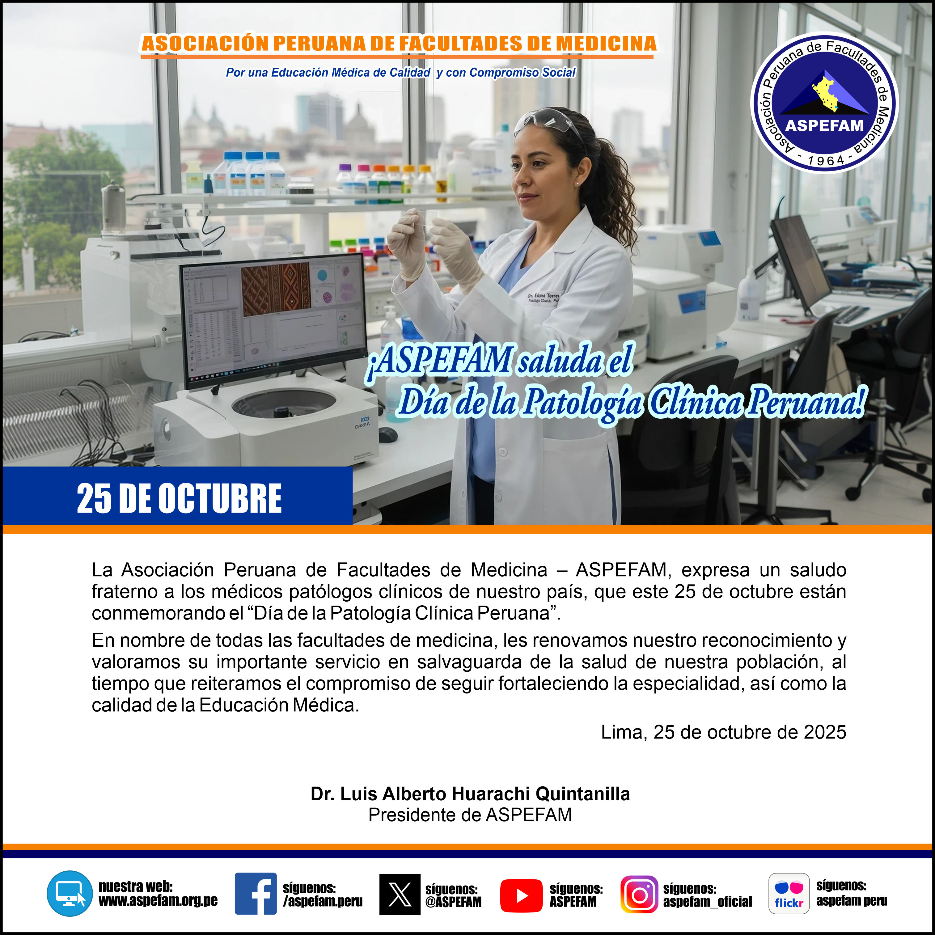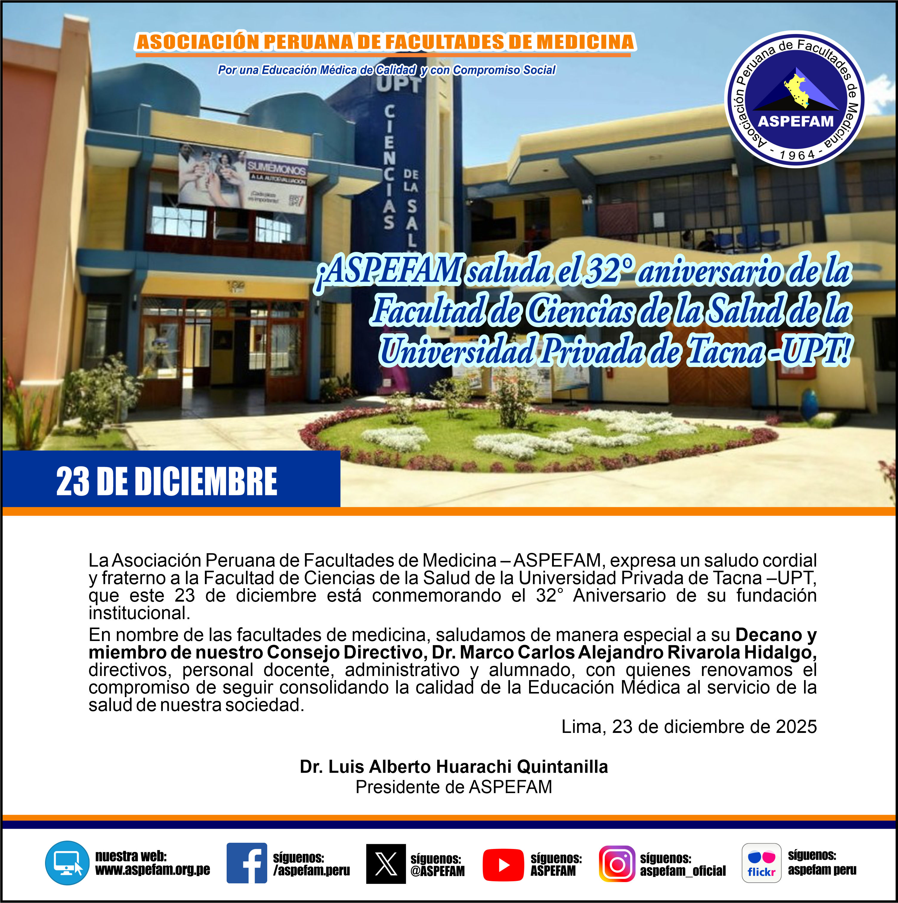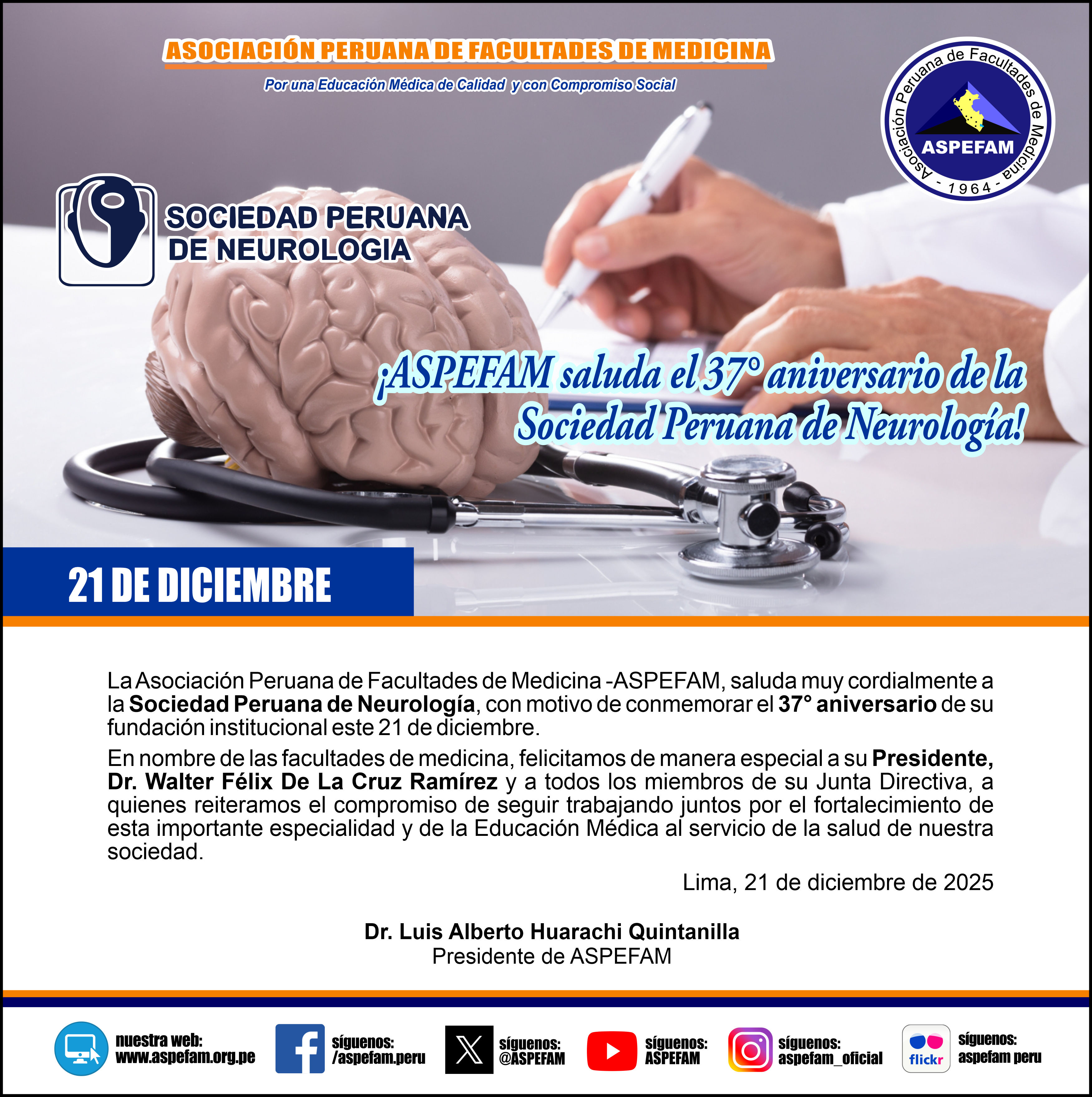 Resumen: Desde el 3 al 14 de noviembre del presente año, la Asociación Peruana de Facultades de Medicina -ASPEFAM, estará organizando el curso virtual “Evaluación de Conocimientos de Ciencias Básicas por Pruebas Objetivas” en las áreas de anatomía, bioquímica, fisiología, farmacología, histología, embriología, patología y microbiología-parasitología...